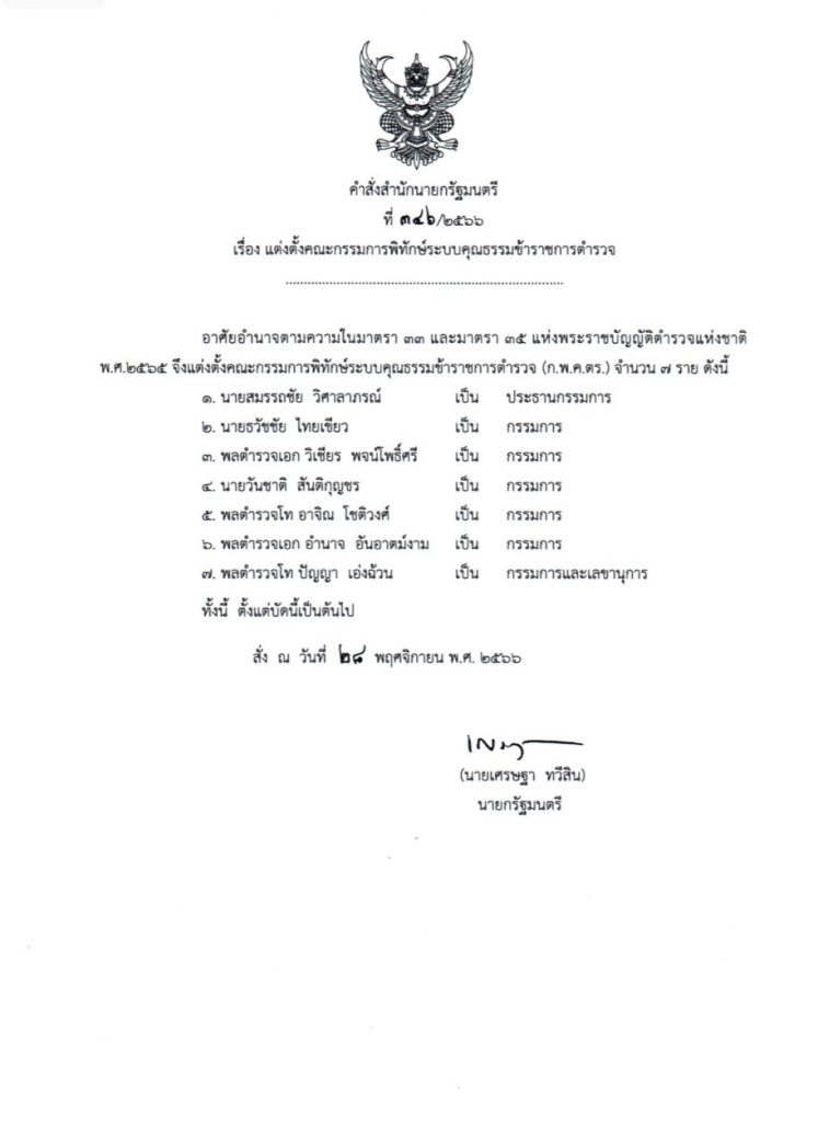 คำสั่งนายกรัฐมนตรี เรื่อง แต่งตั้งคณะกรรมการพิทักษ์ระบบคุณธรรมข้าราชการตำรวจ (ก.พ.ค.ตร.)